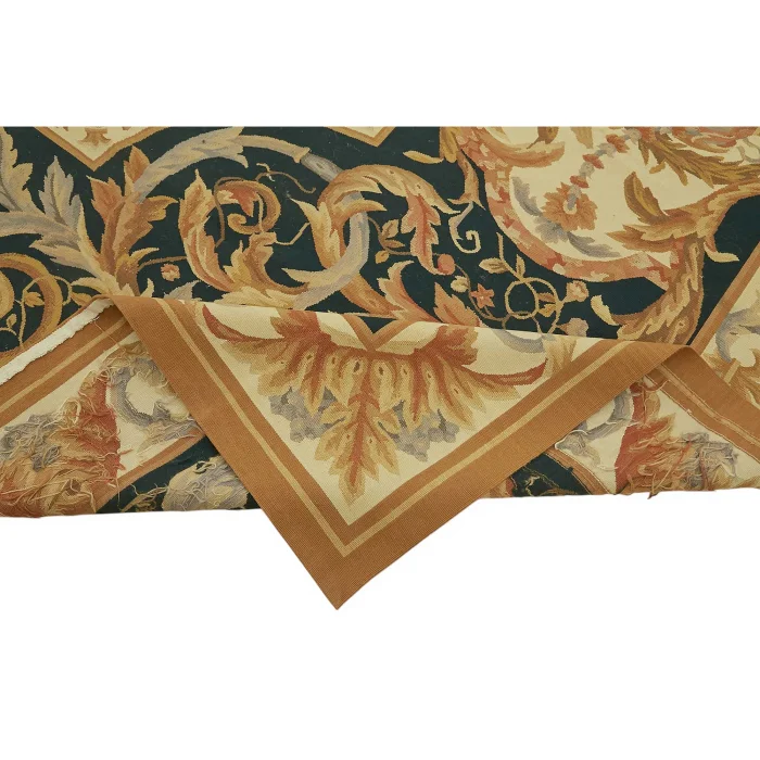 The Aubusson Rug is 304 cm wide by 433 cm long and about 5 mm thick. It weighs an average of 14 kg. It is made with hand-spun wool and cotton. It takes its colors from root dyes obtained naturally.