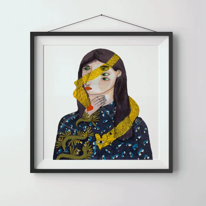 Drawings made with markers, dry and watercolors, then printed in giclée quality on 210g matte Hahnemühle enhanced paper. This technique; Art printing can capture 98% of the original colors, and these colors are preserved for about 200 years in a healthy way. *Will be sent by roll without frame. *Print size is 21x30. *Frame allowances are given extra. *Not measured.