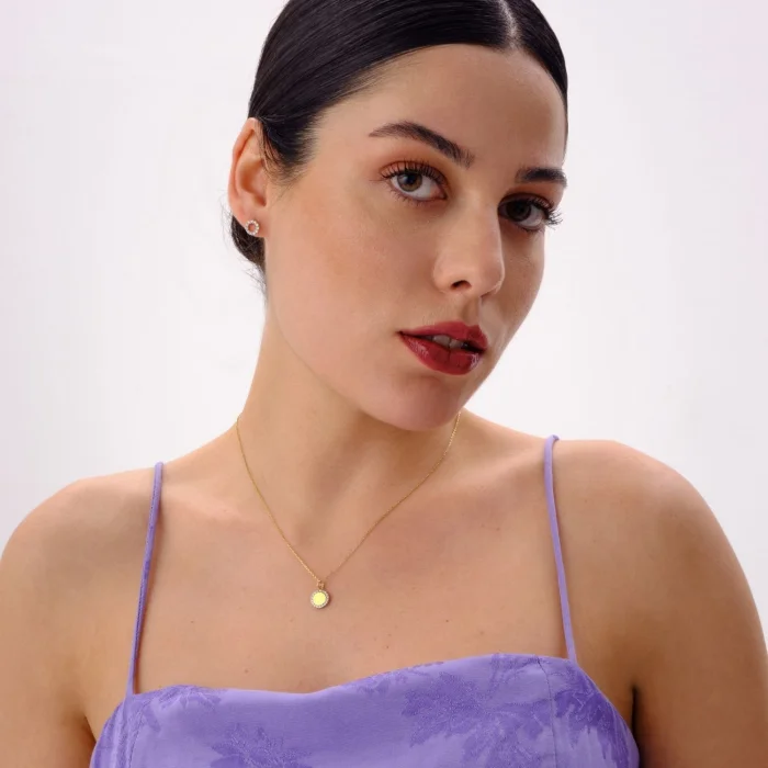 14k Micron Gold Plated on 925 Silver. Silver Weight: 2.30 g. Pendant Diameter: 10 mm. Chain Length: 42 cm. The product is certified.