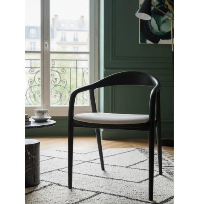 Product: Belle Black Dining Table Set 100 Cm - 4 Chairs Beech Wood Modern Bohemian Scandinavian Design