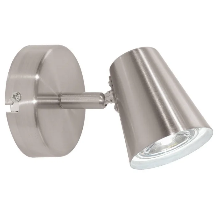Bulb lamp holder type: GU10-LED Maximum wattage: 1X3W bulb included. Product Diameter: 8.5 cm Net Weight: 0.34 Kg Main Material: Steel Main Color: Nickel Matte Kelvin: 3000K IP Status: IP20 Switch Type: Wall Switch Product Voltage: 220-240V,50/60Hz