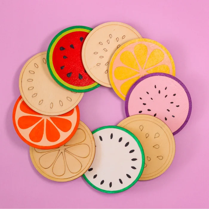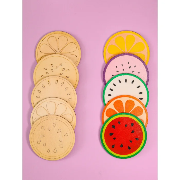 Our unique wooden flower set, which combines creativity and the elegance of nature, offers you a unique art experience with its elegant wooden materials. Each set includes five gorgeous flowers, allowing you to paint them freely using your own color palette. While it offers the chance to personalize each flower with the paint and brush included in the painting kit, it brings naturalness and elegance in homes, offices or special events. Package includes: 5 pieces of coaster (18-23 cm); 12 pieces of acrylic paint; 1 brush with a round tip; 1 flat-tipped brush;