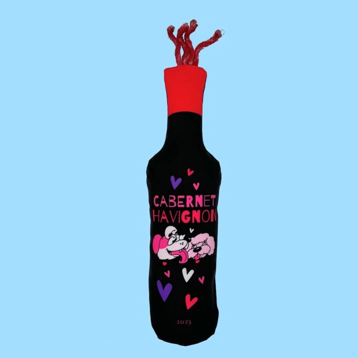 Make your furry friend's playtime even more fun with the Cabernet Havignon Plush Wine Toy!