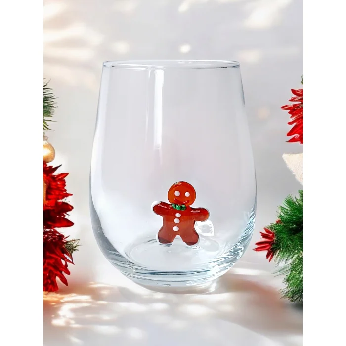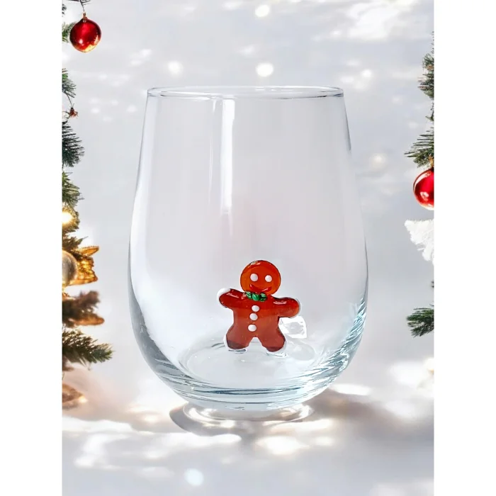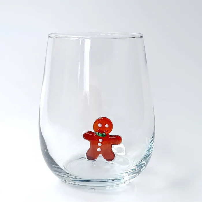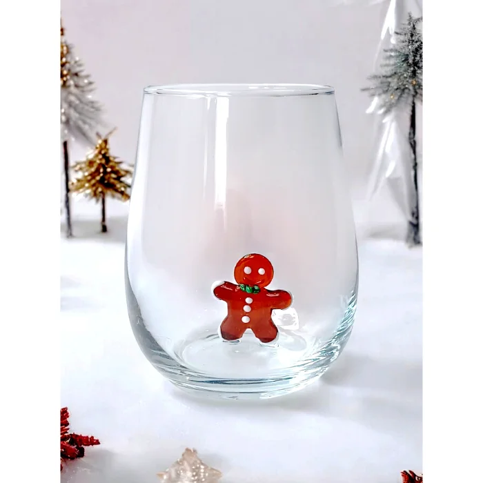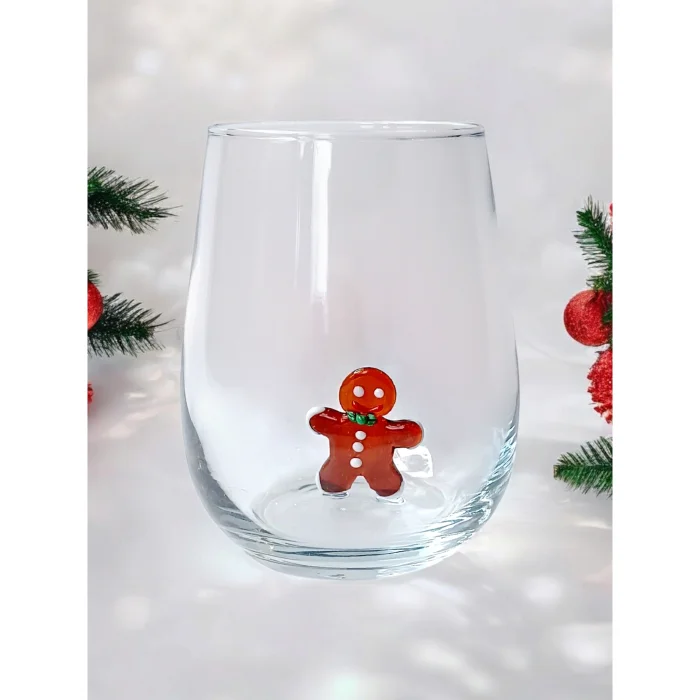 Unique glass water cup with a gingerbread man figure prepared with handmade special glasses. The cup size is 475 cc.