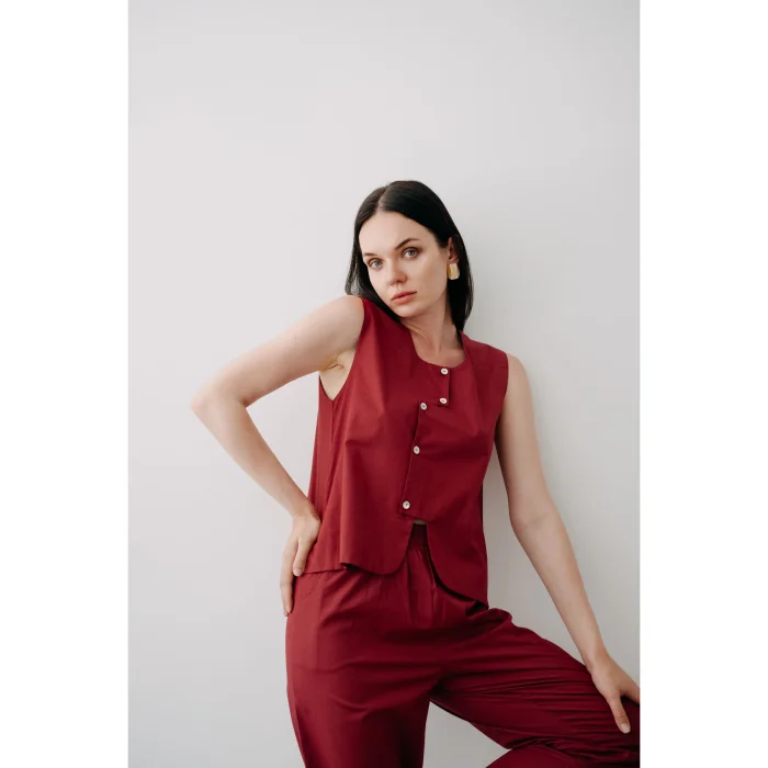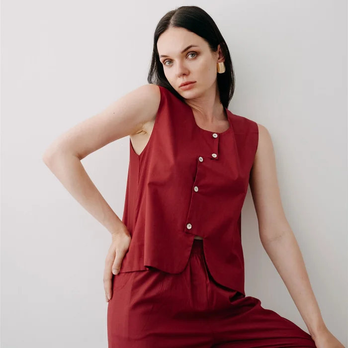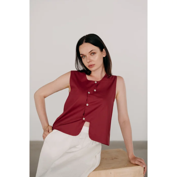 100% cotton fabric, cherry rot blouse. Tank top with diagonal buttonhole detailing. Mother-of-pearl buttons. Full mold. It is sent in handmade cotton Mama in Love bags. Like all of our products, it is handmade.