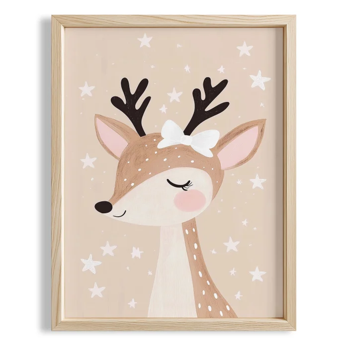 Product: Fawn With Stars And Flowers Kids Room Wooden Wall Art