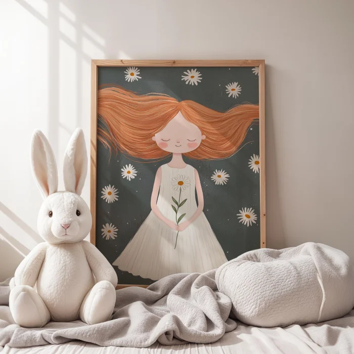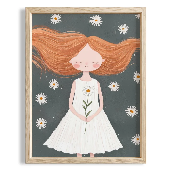 Product: Girl In Dress Holding Daisy Kids Room Wooden Wall Art