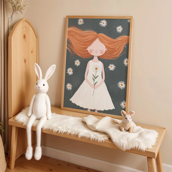 Product: Girl In Dress Holding Daisy Kids Room Wooden Wall Art