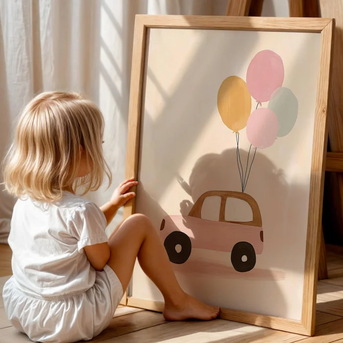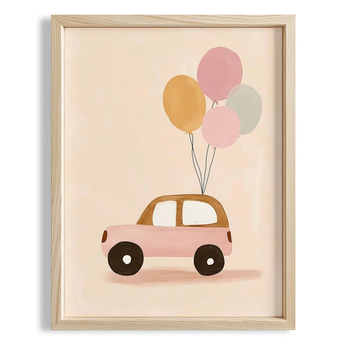 Product: Renkli With Balloons Car Boho Girls' Room Wooden Wall Art