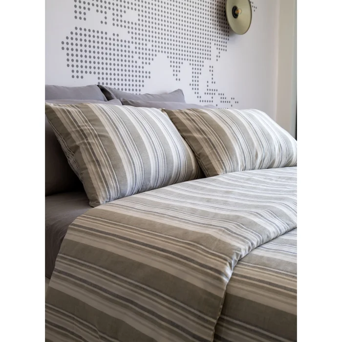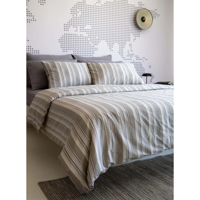 Striped Smooth Percale Duvet Cover offers elegant elegance and superior comfort together with the Smooth fabric developed by Barine. With its vibrant texture and soft touch, it provides excellent comfort throughout the night, while its durable construction stays fresh even with long-term use. Its elegant striped design adds a modern and sophisticated atmosphere to your bedroom. Combining aesthetics and functionality, this duvet cover is designed so that you can spend every night more comfortably and takes your sleep experience to the next level. 100% cotton, pre-washed and Oeko-Tex certified.