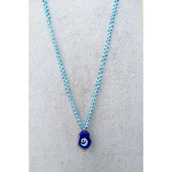 - Made with silver material, it offers a long-lasting and high-quality accessory experience; - Thanks to the use of natural stones, each necklace gains a unique and authentic look; - Blue stones enhance the aesthetics of the necklace as an elegant and stylish detail; - Silver sequins add a modern and sophisticated atmosphere to the necklace, highlighting the nobility of silver color;