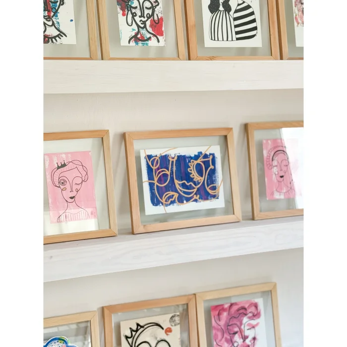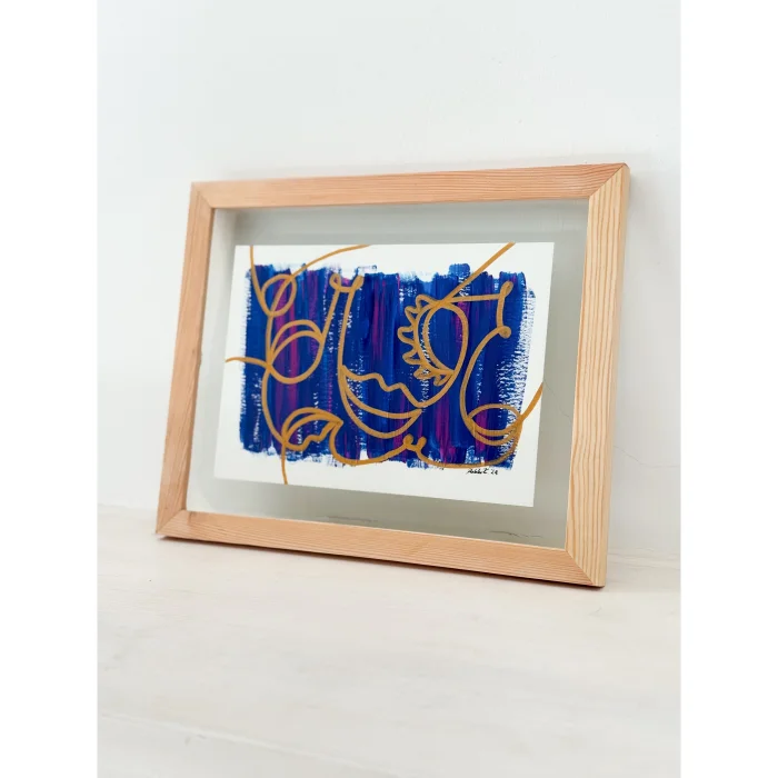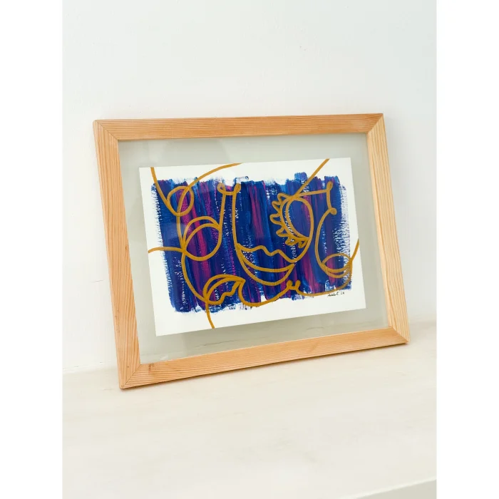 It will be packed in such a way that it will not be damaged in the cargo. Material: acrylic paint, pencil and water-based marker on 290 g of white painting paper. Double glazing, wooden frame.