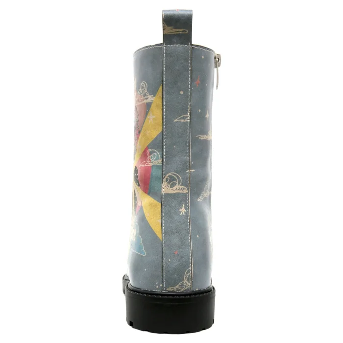 Women Vegan Leather Blue Zipper Long Boots - Find Your Inner Peace Design
