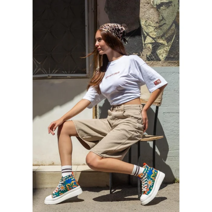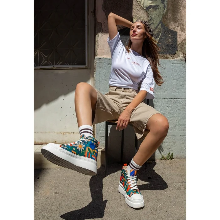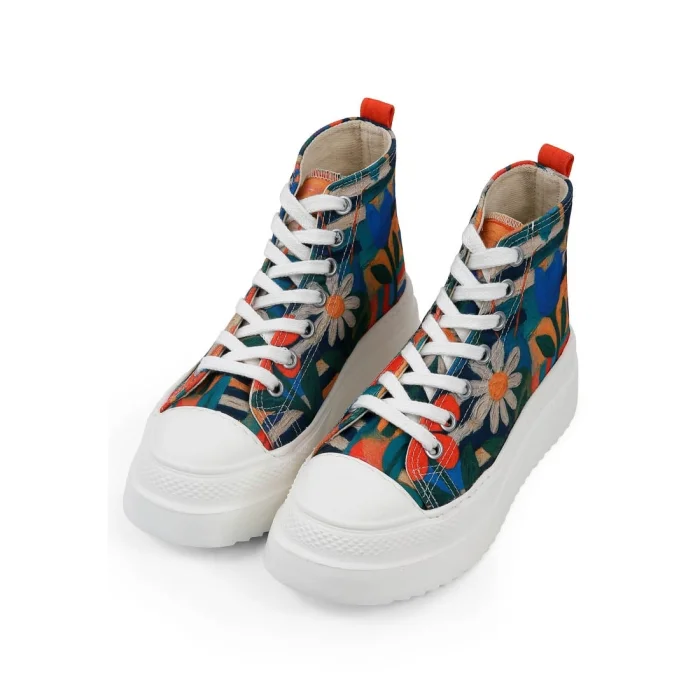 Product: Women Vegan Multicolor Platform High Sneakers - Blossom Hug Design
