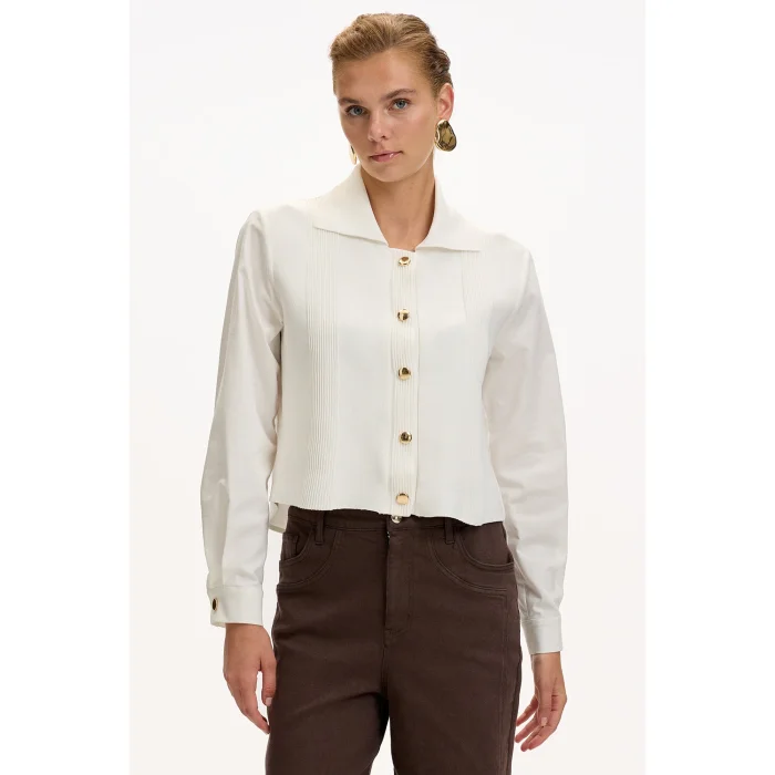 Product: Long Sleeve Knitted Garnished Poplin Regular Shirt