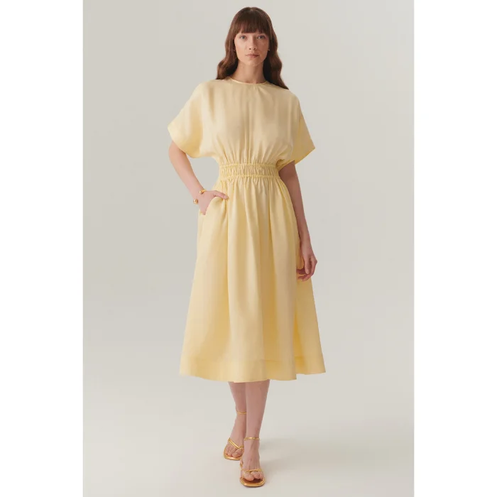 Regular Lyocell Midi Dress With Pleated Waist