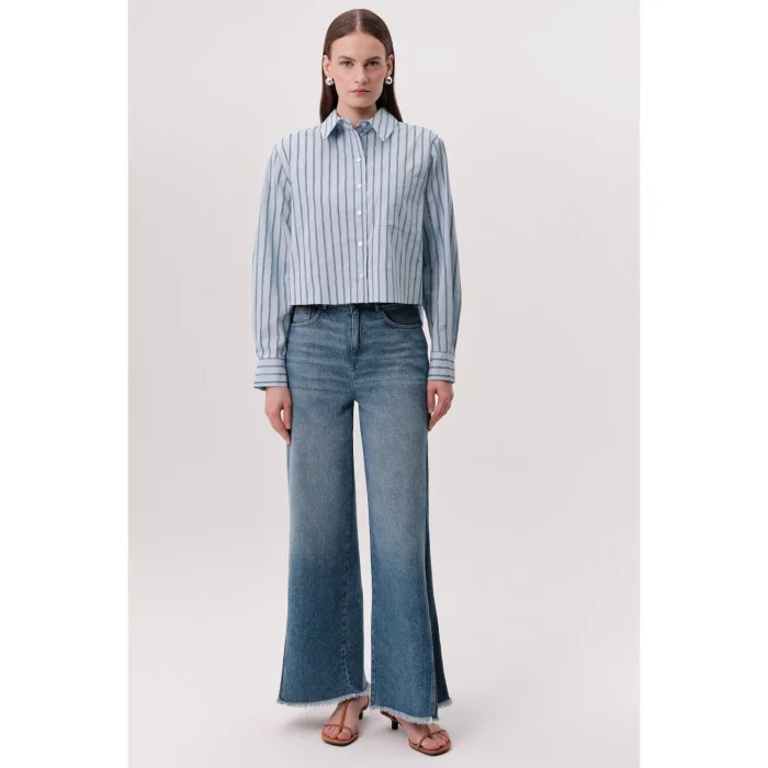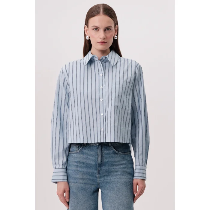 This shirt collar, slit on the sides, striped regular cut shirt is a candidate to be one of the indispensable pieces of your wardrobe. Offering a timeless and stylish look with its dark blue stripes on a light blue background, this piece is a suitable option for those looking for both comfort and style together. It offers a modern silhouette with its regular cut and long sleeve design, while the slits on the sides provide freedom of movement and offer comfortable use all day long. This shirt easily adapts to different combinations with its classic two-color design. Create a comfortable combination with jeans, whether at work or in daily life; This shirt is ideal to complete your style. Thanks to its high-quality fabric and natural drape, you will feel both stylish and comfortable. The classic button collar and sleeve cuffs emphasize the timeless elegance of the shirt. The stylish slits on the sides not only offer ease of movement, but also add a modern and dynamic atmosphere to the shirt. This detail enriches the classic and simple design of the shirt and gives it a unique character. This shirt, which appeals to both those who love classic clothing style and those looking for modern details, will be one of the versatile and useful pieces of your wardrobe. You can easily reflect your style with this striped regular shirt. Product Details: - Cut: Regular - Collar Type: Shirt Collar - Sleeve Type: Long Sleeve - Pattern: Striped - Details: Slit on the Sides - Color: Dark Blue Striped on Light Blue