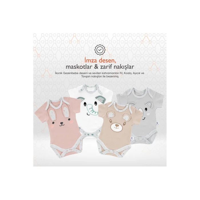 Product Description:Gezenbebe Hero Embroidered Short Sleeve Body for Babies: Carefully Crafted for Your Baby's Delicate Skin - With Gezenbebe's Signature Pattern, Beloved Mascots and Exquisite Embroidery Details! The perfect choice for your baby's sensitive skin: Featuring Gezenbebe's iconic patterns, Elephant, Koala, Teddy Bear and Rabbit mascots, as well as fine embroidery details, this bodysuit completes your baby's clothing collection. Highlights:GEZENBEBE'S UNIQUE DESIGN: Not just a baby bodysuit, but a style statement with Gezenbebe's original, exquisite patterns and exquisite embroidery. PURE COTTON COMFORT: Made of 100% breathable cotton, the Hero Embroidered Short Sleeve Body offers the softest touch to your baby's skin.SIGNATURE PATTERN, BELOVED MASCOTS & ELEGANT EMBROIDERY: This bodysuit makes a difference in your baby's wardrobe with Gezenbebe's unique design, her beloved mascots Elephant, Koala, Teddy Bear and Rabbit, as well as fine embroidery details. UNISEX AND MODERN: It is designed for both girls and boys and draws attention with its fashionable patterns. USER-FRIENDLY: Offers easy wearing and replacement with its nickel-free snap design. PERFECTION IN EVERY DETAIL FOR YOU: We care about customer feedback and are constantly improving our products to make them perfect with comfort, fit and quality. Technical Details:Size Options: Newborn, 0-3 months, 3-6 months, 6-9 months, 9-12 months, 12-18 months. Color Options: Bunny, Elephant, Koala, Teddy (Organic)Please carefully review the size and color options before ordering. The Gezenbebe Hero Embroidered Short Sleeve Body collection for Babies is not only an outfit for your baby, but also the perfect combination of comfort, style and elaborate details. Make every moment of your baby's life!