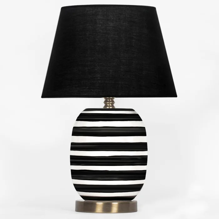 Product: Black And White Striped Madrid Ceramic Table Lamp - Modern And Stylish Lighting