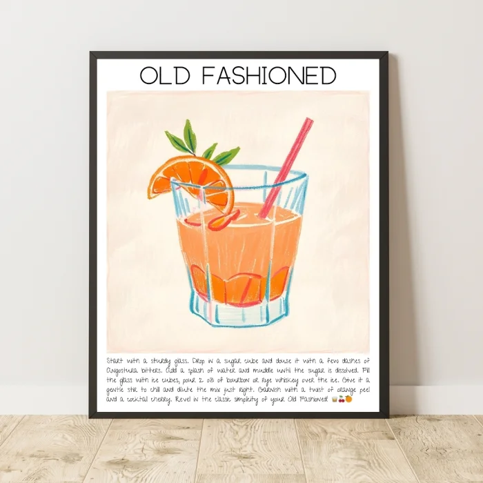 Product: Old Fashioned Art Print Cocktail Design Poster