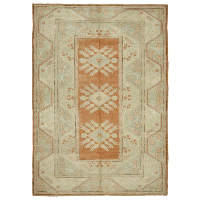 Anadolu Carpet is 197 cm wide, 281 cm long, 7 mm thick, and weighs an average of 17 kg. It is made with hand-spun 100% Organic Wool. Root dye obtained naturally is used.