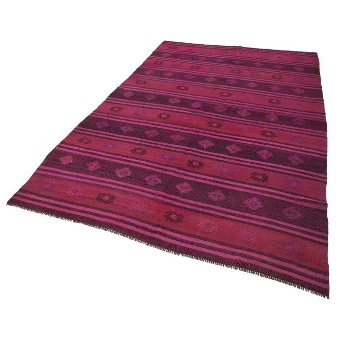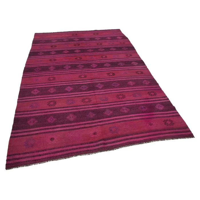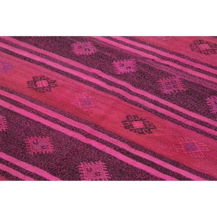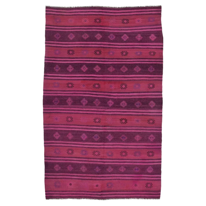 Vintage Cicim Rug is 175 cm wide, 275 cm long, 5 mm thick, and weighs an average of 10 kg. It is made of hand-spun 100% Organic Wool and Bristle. Root dye obtained naturally is used. / Vintage Cecim kilims are on 175 cm widht and 275 cm lenght and the pile height is 5mm, the approximate weight of the rug is 10 kg. It's 100% handknotted wool and goat hair rug. It's made from the natural dye.