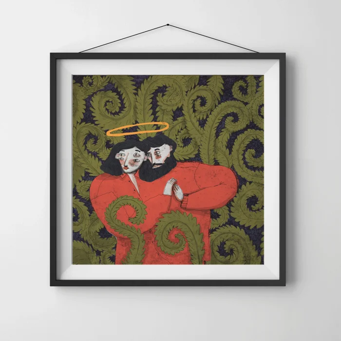 Drawings made with markers, dry and watercolors, then printed in giclée quality on 210g matte Hahnemühle enhanced paper. This technique; Art printing can capture 98% of the original colors, and these colors are preserved for about 200 years in a healthy way. *Will be sent by roll without frame. *Print size is 60x60. *Frame allowances are given extra. *Not dimensioned
