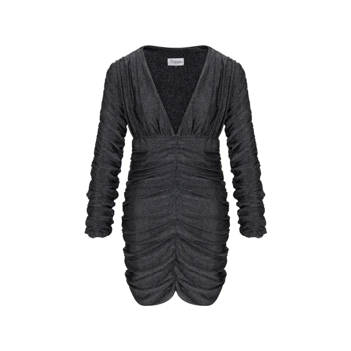 Metallic Grey, Drape, V-neck Mini Dress