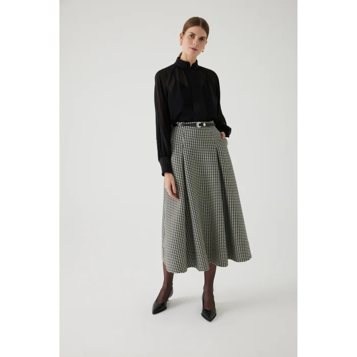 Product: A-line Gingham Patterned Belted Regular Midi Skirt