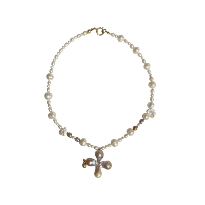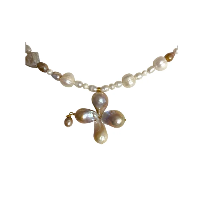 Baroque pearl, barley pearl, sand pearl and 24K gold-plated apparatus were used in the design.