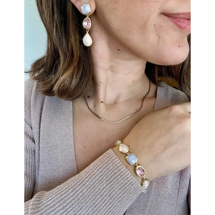 We use real zircon and Swarovski stones in our products. The stones were processed into the products not by gluing, but by the anchoring technique.