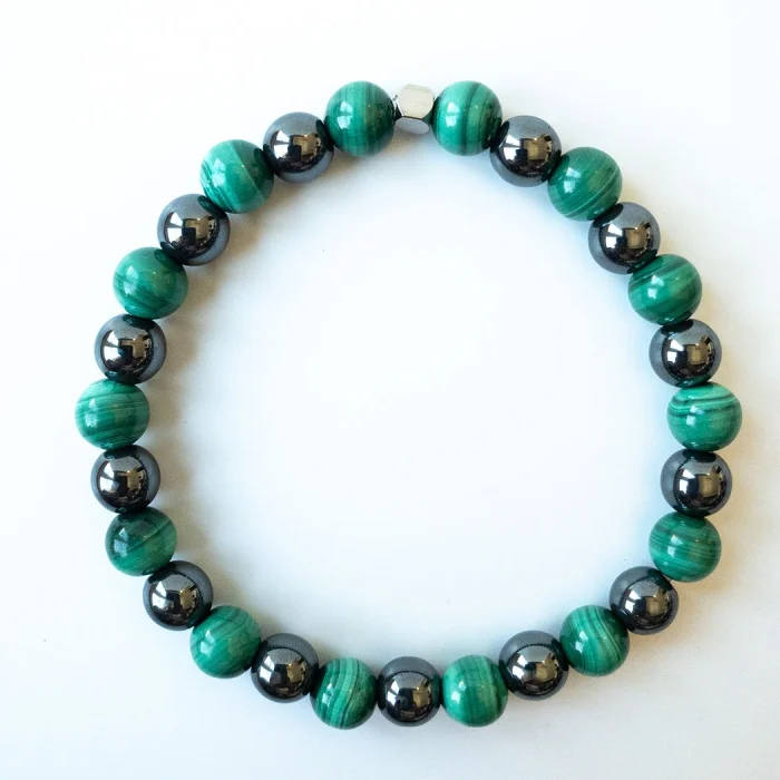 Our handmade bracelet is designed with a strong combination of malachite and hematite stones. Hematite stone, on the other hand, is known to balance energy, strengthen the mind and protect it from negative energies. This specially designed bracelet will complement your style as a stylish accessory and add balance and strength to your life with the positive energies offered by malachite and hematite stones.
