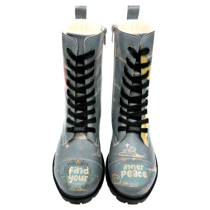 Women Vegan Leather Blue Zipper Long Boots - Find Your Inner Peace Design