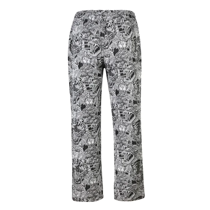 It is jacquard and loose-fitting. It has a wild theme pattern with gray-black-and-white details.