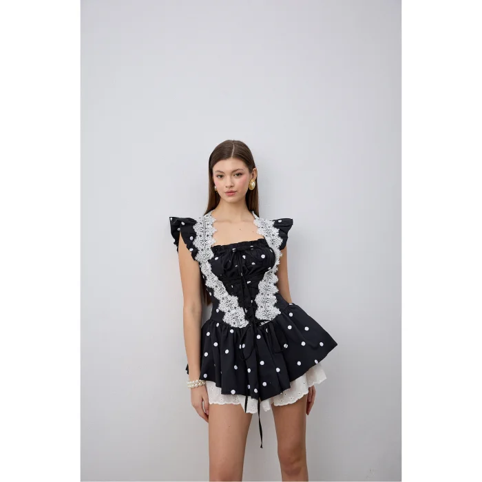 Product: Lina Fistolu Embroidered Polka Dot Mini Dress