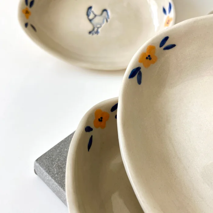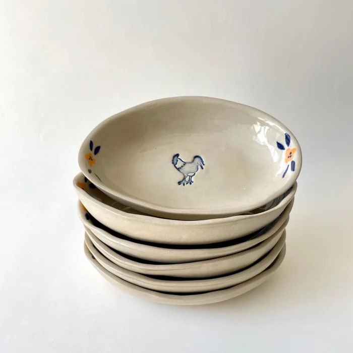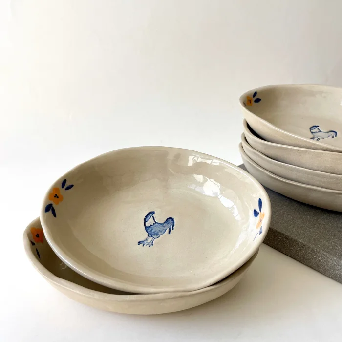 Stoneware is completely hand-shaped from mud and detailed using highly fired, food-grade glazes and dyes. Since it is handmade, each product may contain minimal differences.