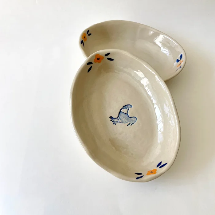 2-piece Set Of Rustic Small Boat-shaped Plates With Rooster Design