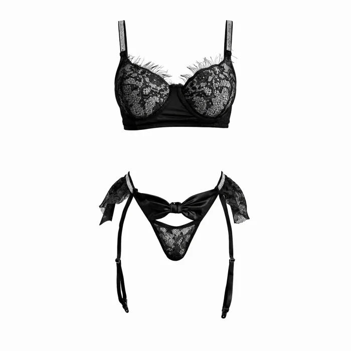 Éternelle 3-Piece French Lace Satin Garter Set creates