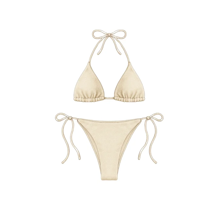 This piece, where a natural and simple tone meets elegant sparkle, draws attention with its triangular cut and bright fabric texture. With its light structure and eye-catching stance, it appeals to those who want to shine with the sun.