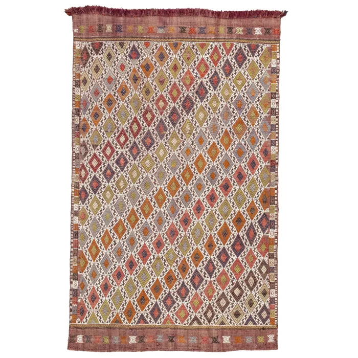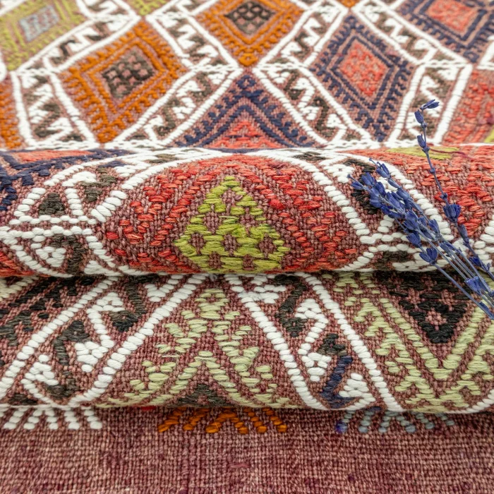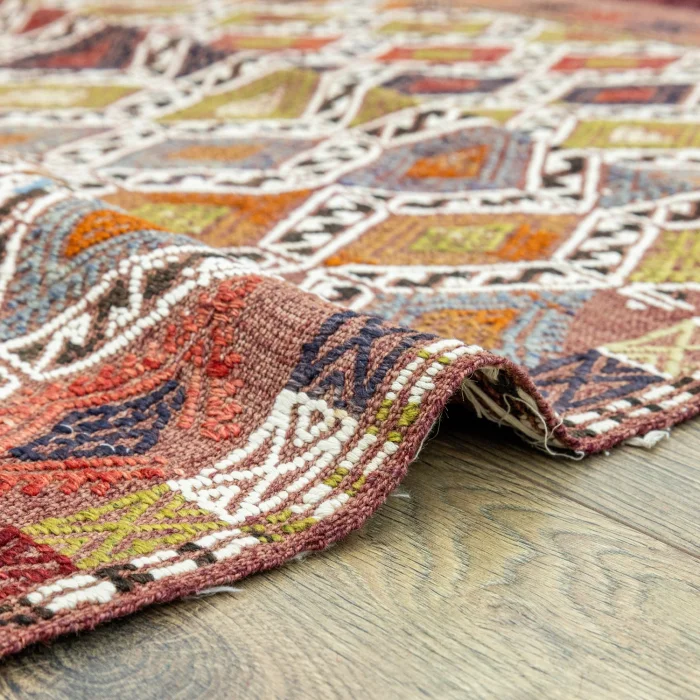 Traditional rug models that will add difference to your living space are here with Soho Antiq quality! This rug model, which is specially designed for all kinds of areas, is prepared with special hand weaving techniques and consists of completely natural cotton and wool. In the twine weaving technique, there are reliefs as if embroidered with a needle. . This is one of the many features that make it different. The main color of the rug model is pastel red, and the other side colors are orange and multicolored. Thanks to the colors that are compatible with each other, you will have an aesthetic rug. On the other hand, the size of the rug is 146 x 235 cm and the thickness is between 1 - 3 cm. You can have local touches with Soho Antiq. The design of the carpet is inspired by the Karapınar region and has the characteristics of the 1970s.