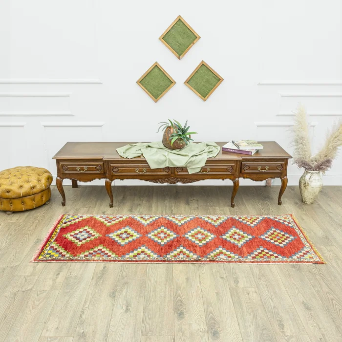 Soho Antiq carpet models offer great options where you can find designs suitable for the concept you want! Made entirely of natural wool and all handwoven, this carpet runner has a thickness of between 1 and 3 cm and its dimensions are 76 x 218 cm. The main color of the red carpet, which is among the various color options in our carpet catalog, is the prominent color. In addition, other colors in the rug model include green and blue. Soho Antiq adds a unique touch to its carpet models with its historical and regional touches. Their designs, called geometric patterns, reflect the spirit of the 1980s, inspired by the Aegean Region region. All these special carpets are designed with carefully applied hand weaving techniques.
