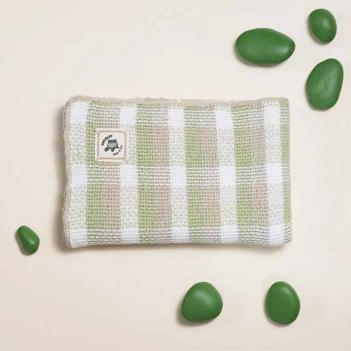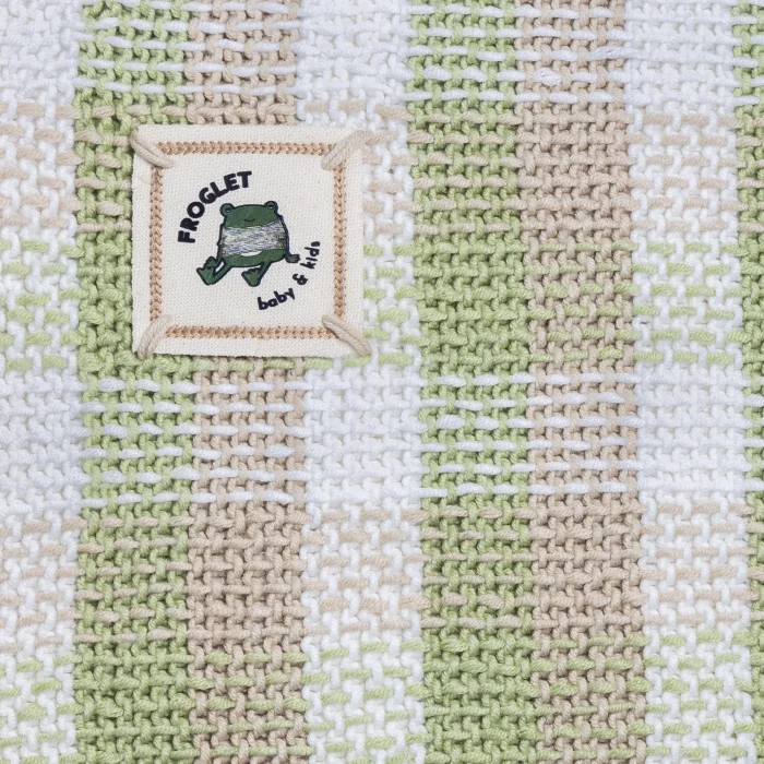 - double-sided; gingham on the front, striped in purl stitch on the back