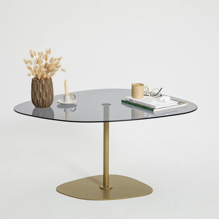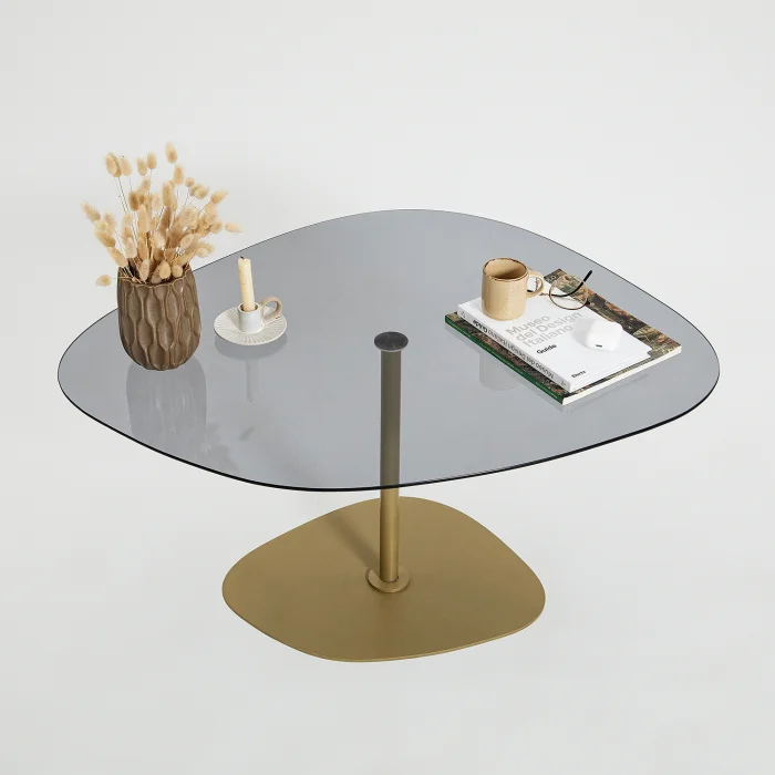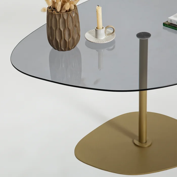 PRODUCT SIZES • Width: 85 cm. Height: 40 cm. Depth: 67 cm. You can examine the detailed size of the product from our images. PRODUCT FEATURES • Table leg material is metal. It is gold in color. Painted with electrostatic powder/ oven paint. Does not rust, does not peel. • Tempered smoked glass is used. • Tempered glass; It is a safe glass that is resistant to impacts and breakage, has high strength, and does not create any danger when broken. The resistance of normal glass is increased by subjecting it to heat treatment with advanced technology. When tempered glass is broken, it breaks into small blunt pieces. Therefore, it does not pose a danger to human health and safety, it is safe. • Materials suitable for environment and health are used. • First quality connection and accessory materials are used. • It is domestic production with 100% domestic material. INSTALLATION INFORMATION • Installation belongs to the customer. • Our products are shipped disassembled; It does not require mastery while installing, you can easily install it with your home appliances. • A slightly damp cloth can be used for cleaning. • It is suitable for home, office, workplace, living room and all places. BOX INFORMATION • The product has been packaged with special materials and care. It can be supported with high strength packaging materials and corners. First class cardboard is placed in a box and covered with nylon in the shrink machine. DELIVERY INFORMATION • When receiving the product from the cargo, the packages must be checked, damaged packages or products must not be received, and you must request assistance from the cargo officer in order to prepare the damage assessment report. • Free exchange or return of the damaged products can be made. (If there are damaged parts after receiving the product, we provide the delivery of damaged parts when you send it to our customer representative) • Before purchasing the product, we kindly ask you to check its images, size and description. We hope you have a good day.