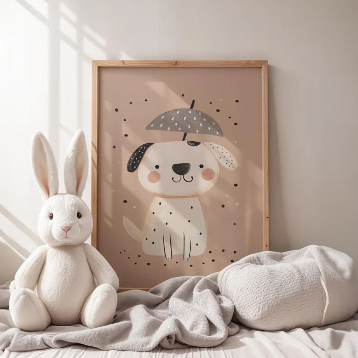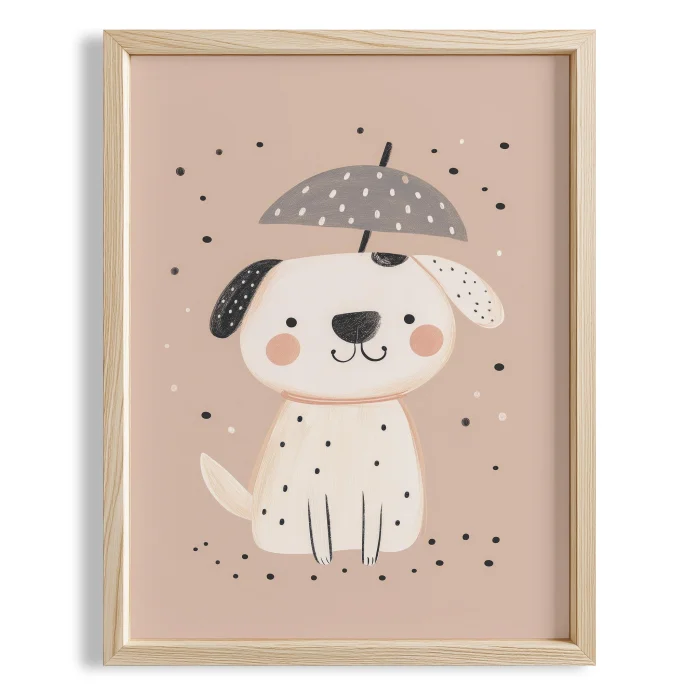 Product: Puppy Standing Under Umbrella Kids Room Wooden Wall Art