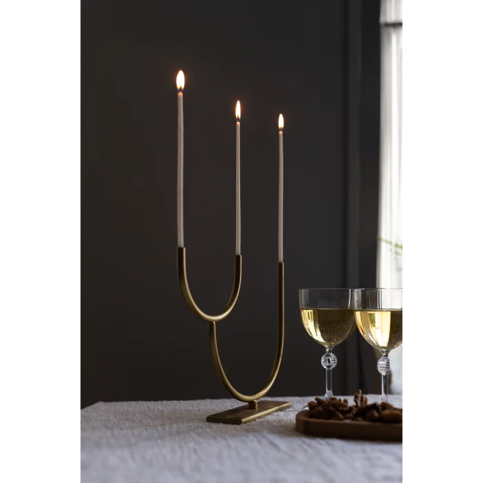 A vintage and romantic touch to table presentations with the three-armed minimal candlestick.