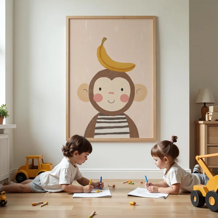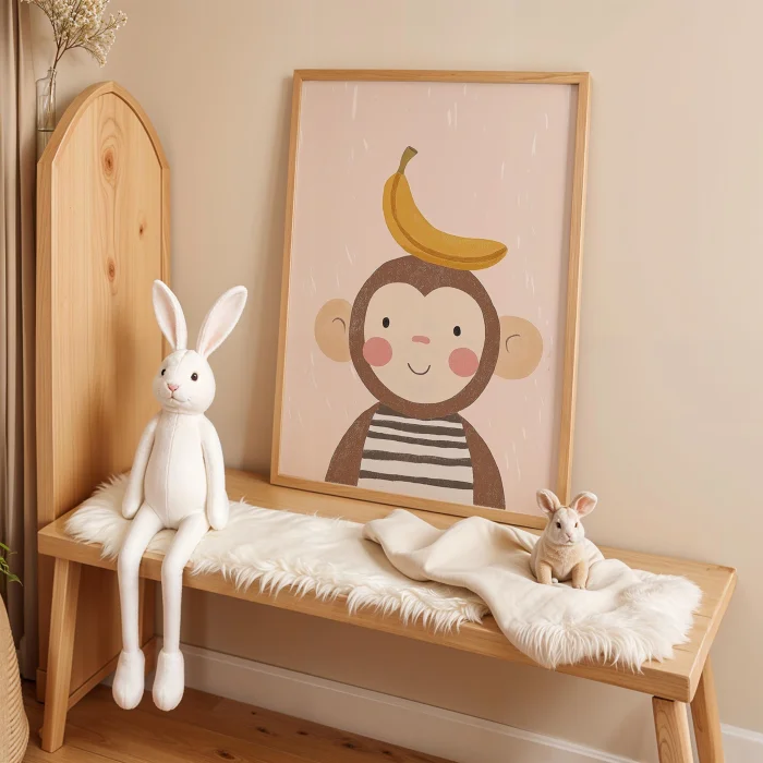Product: Cute Maymun Ve Muz - Children's Room Wooden Framed Wall Art