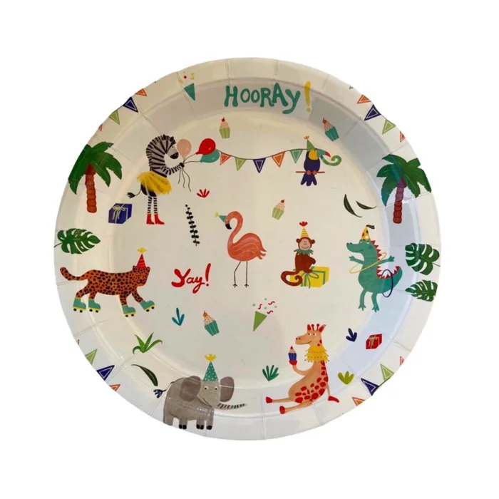 8 in a package paper plates. 22 cm x 22 cm, Jungle design.