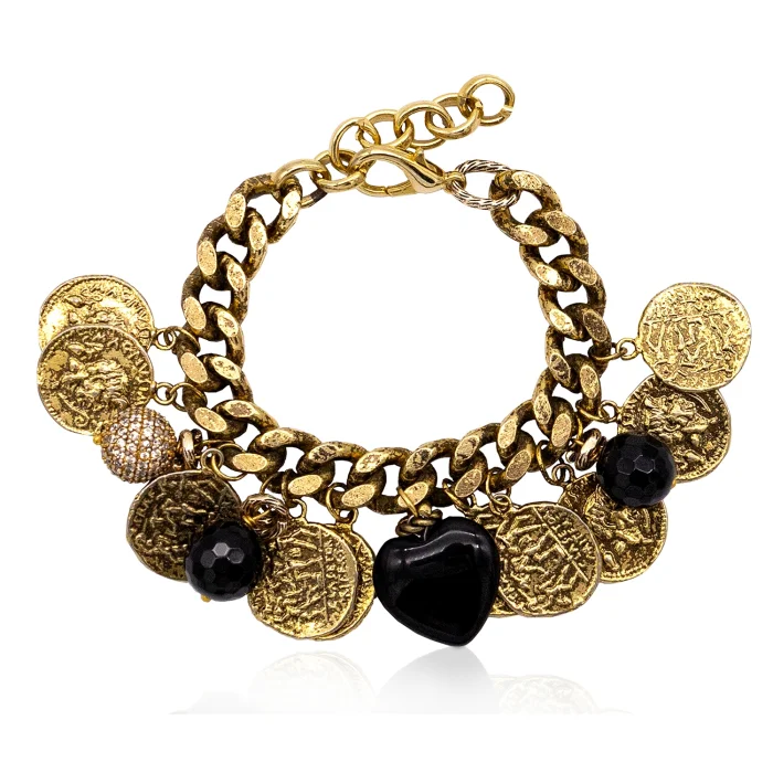 Production Type: Handmade Material: 22 carat gold-plated brass chain, faceted onyx stone Length: 17 cm + 5 cm extension chain