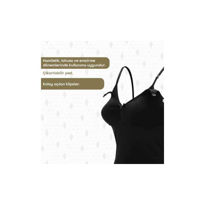 Product Description:Bmom Breastfeeding & Pregnancy Tank Top: The Choice of Stylish Moms! Do not compromise on your style while caring about your health and comfort. Maintain your elegance throughout your pregnancy with BMOM, designed with the unique signature of Gezenbebe. Standout Features:UNIQUE BROM SIGNATURE: This tank top offers more than just a Breastfeeding & Pregnancy Athlete; It is a fashion statement with Bmom's special pattern. BREATHABLE TEXTURE: With the unique softness offered by the breathable cotton fabric, your skin meets its most comfortable state. ULTRA-SOFT FABRIC: Specially designed for your comfort and enjoyment during pregnancy and postpartum period. EXCELLENT COMFORT: Ideal for home, outdoors, on the go, in public, or everyday use. UNIQUE DESIGN: Designed for you to breastfeed your baby comfortably and healthily. LONG-TERM USE: It is suitable for use during pregnancy, postpartum and breastfeeding. EASY TO USE: Thanks to the easy-to-open clips, you can breastfeed your baby without taking off your underwear. Technical Specifications:Sizes: 80B, 85B, 90B, 95B, 100BRenks: Grey, Black, MinkFabric: 93% cotton, 7% lycraBmom is with you in the most special moments of motherhood. With its stylish and functional design, we have prepared it with the comfort of you and your baby in mind. Feel comfortable and stylish anytime, anywhere with Bmom!