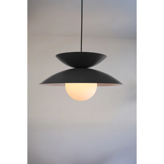 Our lamp is handcrafted using metal lathe and metal spinning techniques. To ensure long-lasting color and durability against impacts, the surface is oven-cured. No solvents are used during the painting process, making it environmentally friendly.